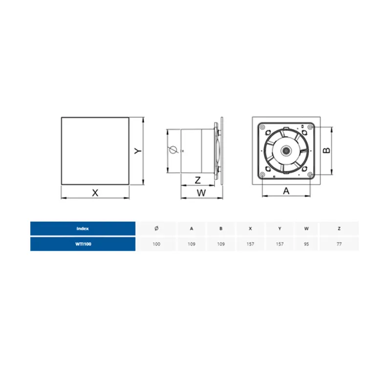AWENTA Trax ventilator inox 100 (WTI100) je dekorativni kupatilski ventilator Ø100 mm sa elegantnim prednjim panelom od nerđajućeg čelika (inox), namenjen za ventilaciju kupatila, toaleta i drugih manjih prostorija. Sa protokom vazduha od 89 m³/h, nivoom buke od 37 dB i snagom od 13 W, pruža pouzdanu ventilaciju uz moderan izgled i jednostavnu montažu. Zahvaljujući inox završnoj obradi, predstavlja odličan izbor za savremene enterijere gde su važni i estetika i funkcionalnost.