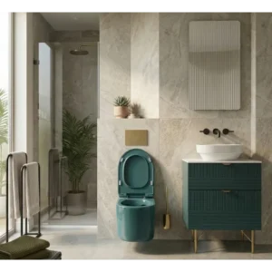 Petrolej zelena boja predstavlja trend u savremenom uređenju kupatila. U kombinaciji sa zlatnim ili crnim detaljima, ova WC daska daje prostoru luksuzan izgled, jedinstven karakter i estetsku usklađenost.