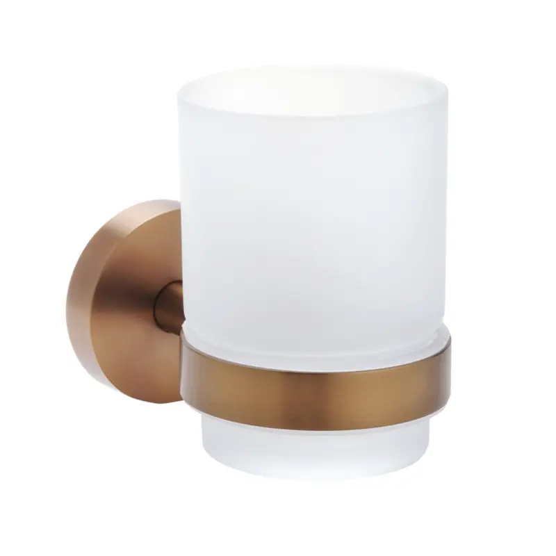 Ovaj držač čaše izrađen je od kombinacije mesinga i matiranog stakla, što garantuje dug vek trajanja i otpornost na uslove u kupatilu. Mesing kao osnovni materijal poznat je po svojoj izdržljivosti i otpornosti na vlagu i koroziju, dok matirano staklo pruža dodatnu estetsku vrednost i lakoću održavanja.