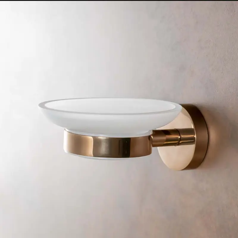 Ovaj držač sapuna izrađen je od kombinacije visokokvalitetnog mesinga i matiranog (mlečnog) stakla, što garantuje izuzetnu izdržljivost i otpornost na vlagu. Mesing kao osnovni materijal obezbeđuje čvrstoću i dugotrajnost, dok PVD završna obrada dodatno štiti površinu od ogrebotina i habanja.