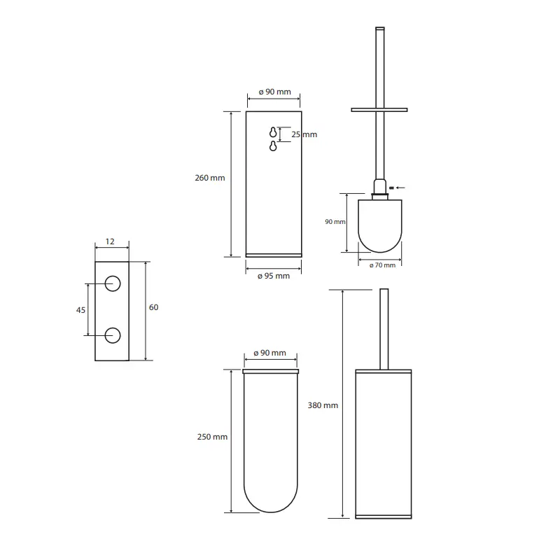 Držač četke je stabilan i dobro konstruisan, tako da četka stoji sigurno i uredno kada nije u upotrebi. Dizajn omogućava diskretno skladištenje četke, čime se doprinosi urednom izgledu kupatila.
