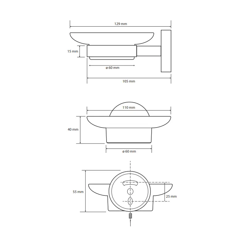 Držač sapuna predviđen je za zidnu montažu, što omogućava bolju organizaciju prostora oko lavaboa ili tuš zone. Ovakav način postavljanja oslobađa površine i doprinosi urednijem izgledu kupatila.