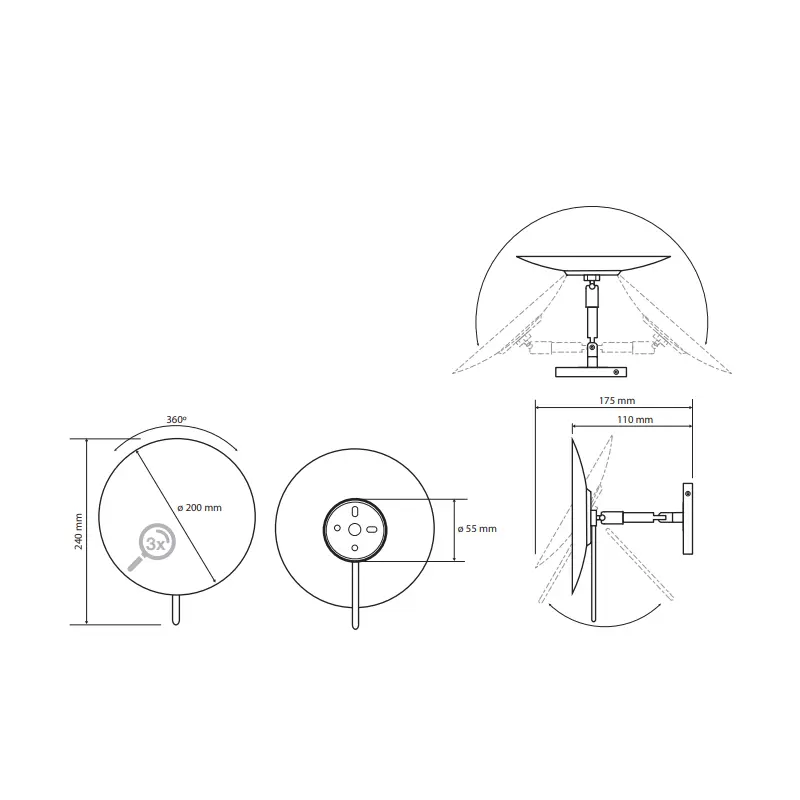 Jedna od ključnih prednosti ovog ogledala jeste njegova funkcionalnost. Zidna montaža omogućava optimalno iskorišćenje prostora, dok pomični krak omogućava jednostavno prilagođavanje položaja ogledala.