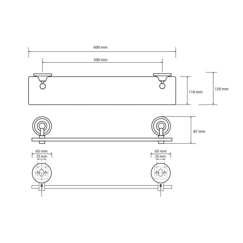 Bronzana završna obrada nosive konstrukcije daje proizvodu poseban vizuelni identitet. Ova nijansa unosi osećaj luksuza i topline, što je posebno važno u kupatilima gde dominiraju hladni materijali poput keramike i stakla. Kombinacija metala i stakla dodatno naglašava kontrast i daje proizvodu sofisticiran izgled.