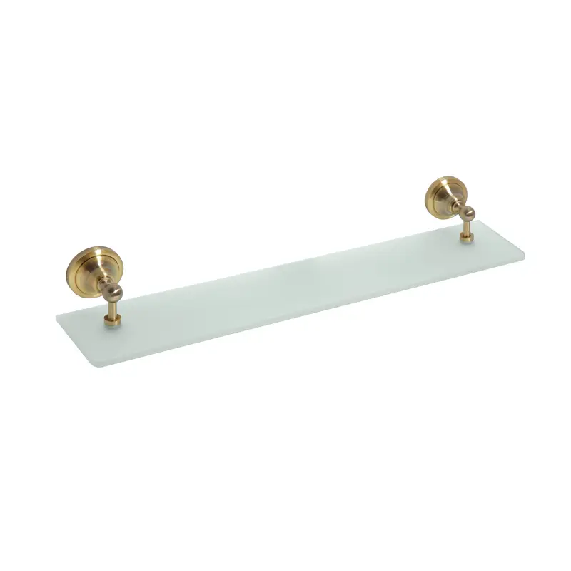Ova polica izrađena je od kombinacije mesinga i stakla, što obezbeđuje stabilnost i dugotrajnost u svakodnevnoj upotrebi. Metalni nosači pružaju čvrstinu i sigurnost, dok staklena površina omogućava lako održavanje i dug vek trajanja.
