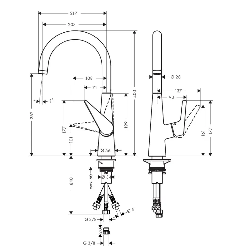Hansgrohe Talis M51 260 model sa tri priključne cevi dizajniran je za niskopritisne sisteme i rad sa bojlerima. Ova tehnologija omogućava stabilan rad čak i pri nižem pritisku vode, što je čini idealnim izborom za kuhinje sa akumulacionim bojlerima.