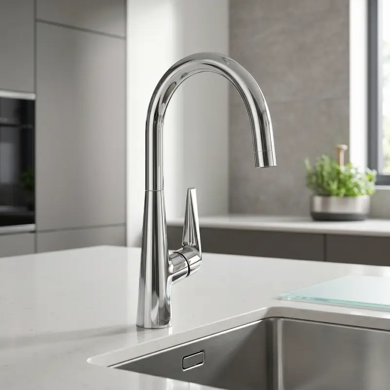 Talis M51 serija karakteriše elegantan, konusni dizajn koji se prirodno nastavlja u tanak i moderan izlivnik. Ovaj oblik se lako uklapa u sve tipove kuhinja – od klasičnih do savremenih.