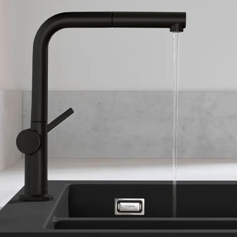Hansgrohe Talis M54 270 u mat crnoj završnici predstavlja savršen izbor za moderne i industrijske kuhinje. Minimalistički dizajn i elegantna silueta čine ovu slavinu centralnim vizuelnim elementom u prostoru. Mat crna boja daje snažan kontrast i luksuzan izgled.