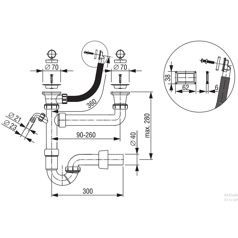 - Sifon za dvodelnu sudoperu PVC sa rešetkom i prelivom (ID-195345) predstavlja kompletno i pouzdano rešenje za odvod vode kod dvodelnih sudopera
