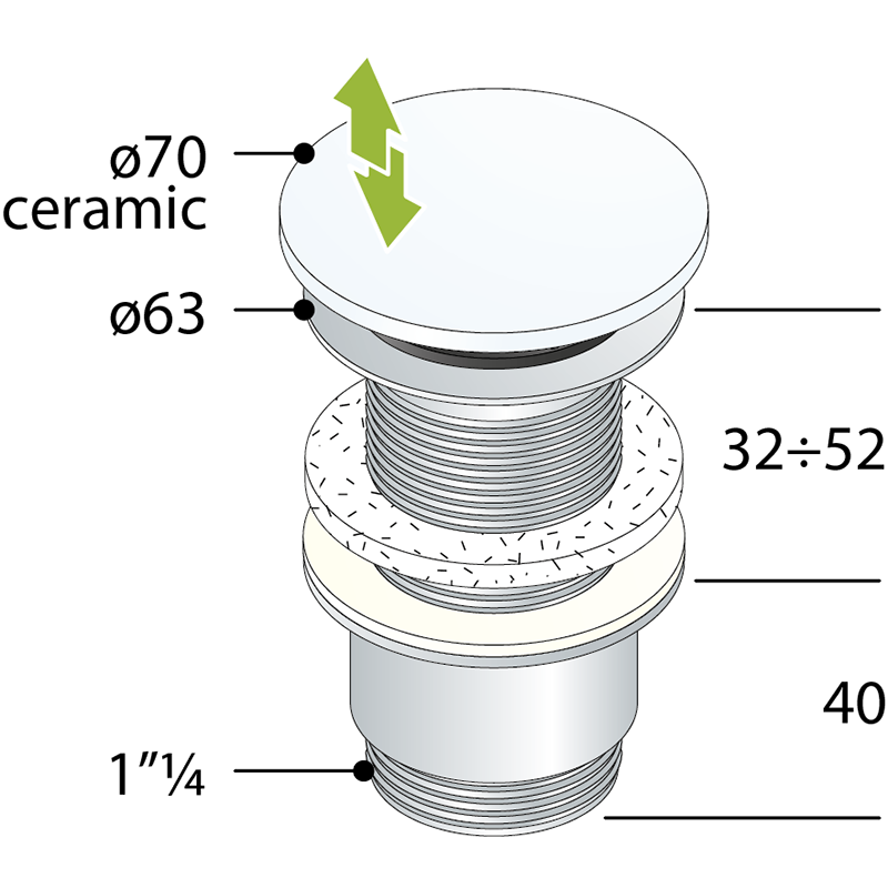 - Keramički poklopac (ø63 mm) koji se estetski uklapa sa lavaboima od keramike