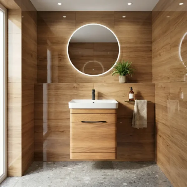 Pino Art Luxor F50 lavabo sa ormarićem donosi savršen spoj moderne forme i prirodne estetike drveta. Drvo dekor unosi toplinu u prostor, dok minimalističke linije Luxor serije daju kupatilu savremen i uredan izgled. Ovaj model se lako uklapa u različite stilove enterijera – od modernih do klasičnih kupatila.