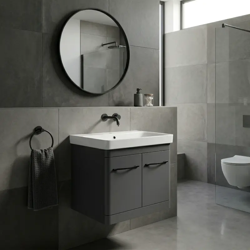 - Antracit boja: Daje moderan, elegantan i premium izgled kupatilu
