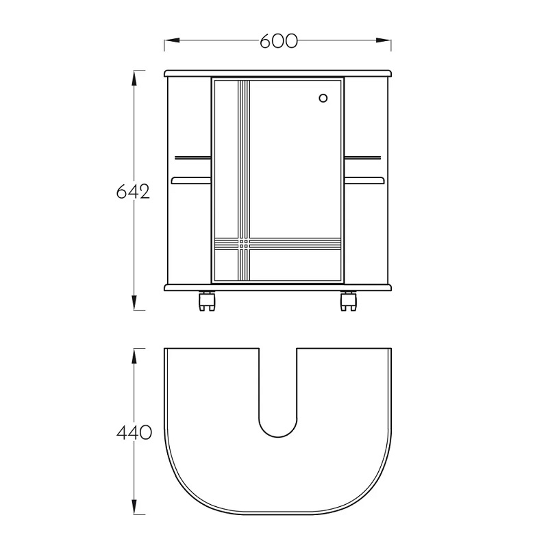 Unutrašnjost ormarića dizajnirana je tako da omogući maksimalnu iskorišćenost prostora. Ormarić sadrži police koje omogućavaju pregledno odlaganje: