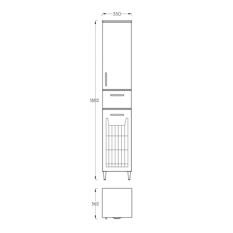 Ove dimenzije pružaju dovoljno prostora za organizaciju kupatilskih potrepština, dok njegova uska konstrukcija omogućava postavljanje i u kupatilima manjih dimenzija.