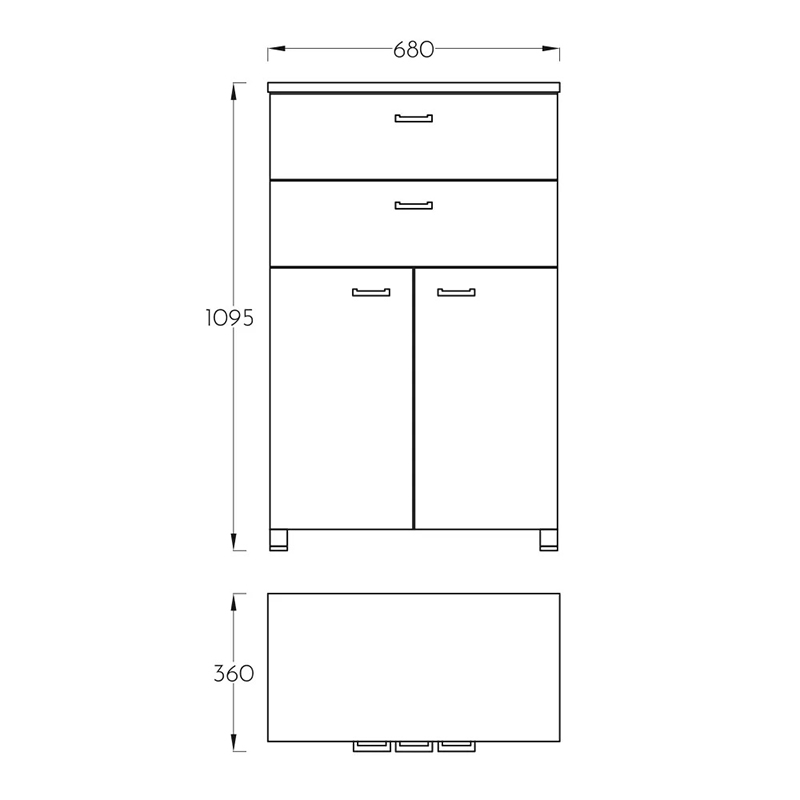 - Dimenzije: Visina 1095mm, širina 680mm, dubina 360mm.