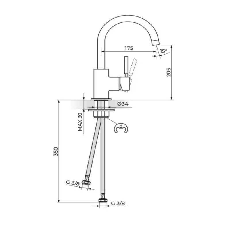 Slavina dolazi sa fleksibilnim priključnim crevima koja su IMQ sertifikovana, što garantuje sigurnost i kvalitet. INOX set za pričvršćenje omogućava stabilno i dugotrajno postavljanje slavine.