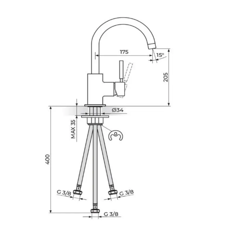 - Visina izliva: 205 mm