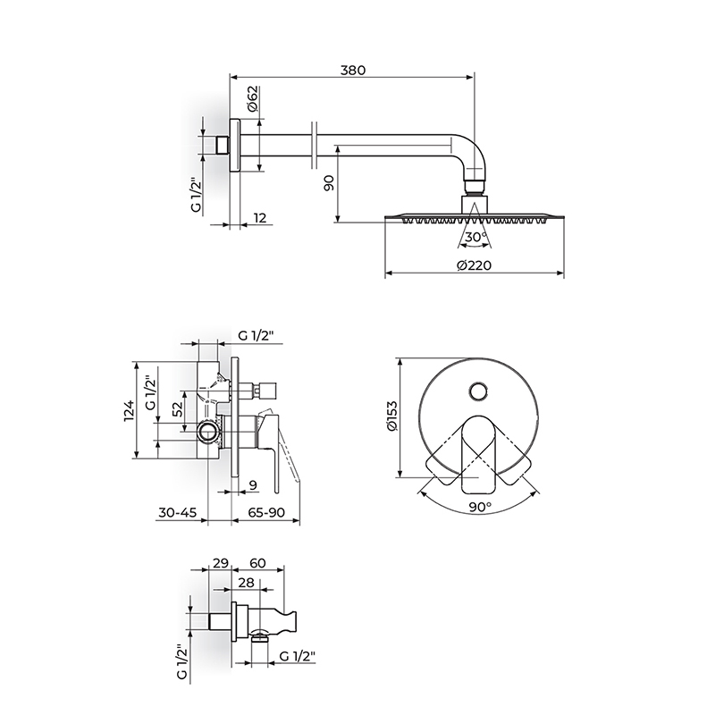 Velika tuš ruža prečnika 250 mm obezbeđuje ravnomeran i prijatan mlaz koji pruža osećaj opuštanja i udobnosti pri svakom tuširanju. Ručni tuš sa fleksibilnim crevom dužine 150 cm omogućava dodatnu fleksibilnost i praktičnost prilikom svakodnevne upotrebe.