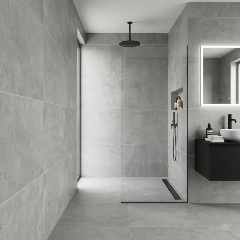 Ovaj format je savršen za moderne kupatilske koncepte, posebno u kombinaciji sa walk-in tuš kabinama i velikim površinama bez vizuelnih prekida.