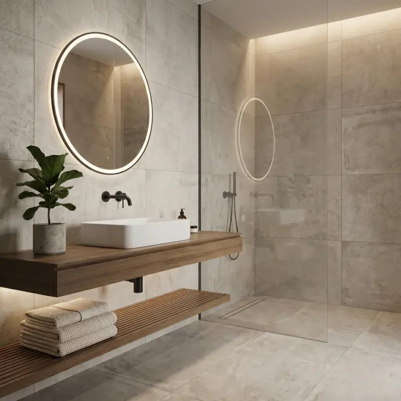 Sabbia ton se lako kombinuje sa drvenim elementima, belim sanitarijama i modernim detaljima, čime omogućava veliku fleksibilnost u dizajnu enterijera.