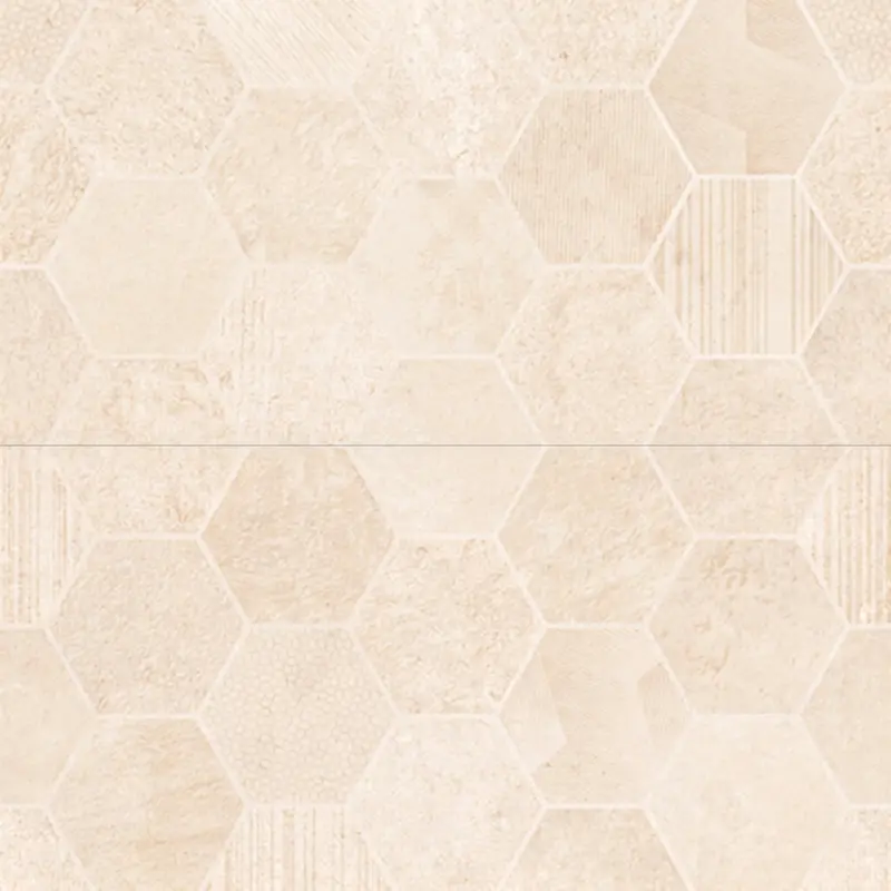 Sintesi Framework Concrete Beige Hexagon pločice izdvajaju se po dekorativnom heksagon uzorku koji razbija jednoličnost klasičnih pločica i unosi vizuelnu dinamiku u prostor. Ovaj geometrijski detalj čini ih idealnim za akcentne zidove i moderne enterijere.